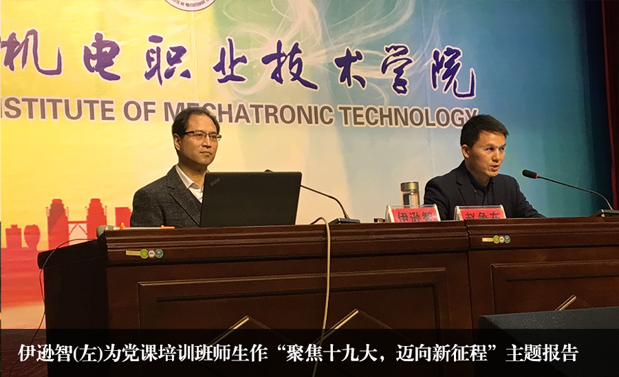 2017年11月28日下午,陕西机电职业技术学院党委书记、院长伊逊智同志为学院第一期党课培训班师生作“聚焦十九大,迈向新征程”主题报告。报告会由学院党委委员、组织部部长、党政办主任赵争东同志主持。