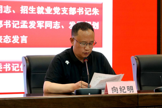 铁道工程学院党支部书记贾九荣、招生就业党支部书记朱云洁、经管与艺术学院党支部书记孟发军、发展规划处党支部代表田川依次作表态发言。他们表示要做到:一是提高认识,坚决贯彻学校党委巡察工作部署。要自觉把这次巡察作为接受党性教育、加强党性锻炼、经受组织考验的难得机会,主动接受巡察组检查和群众监督,共同努力把这次巡察任务完成好。二是积极配合,全力保障巡察工作顺利开展。要严格按照巡察组的要求,全面、及时、准确地提供报送各类情况和材料,让巡察组全面客观掌握工作情况。三是切实整改,确保巡察工作取得实效。要对巡察组提出的问题、差距和薄弱环节,及时梳理,务必做到即知即改、立行立改、真改实改。