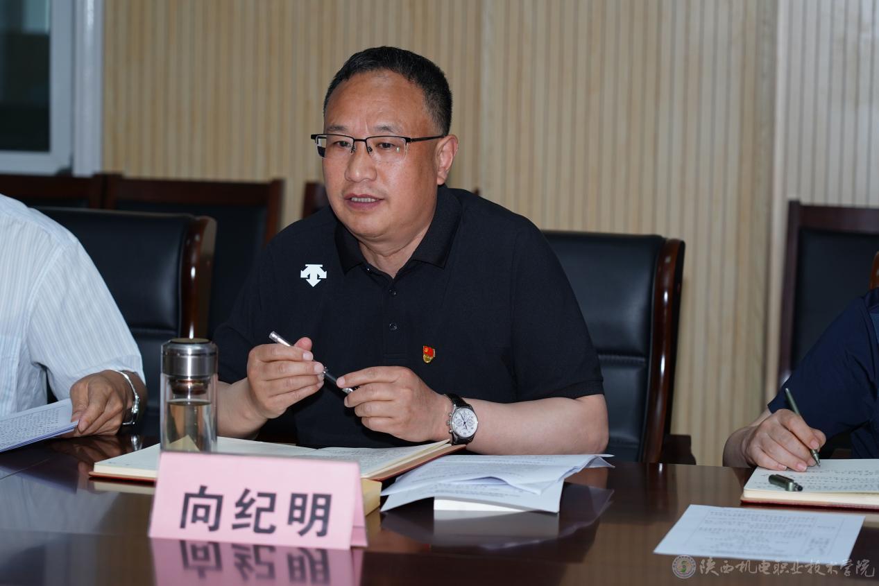 6月14日上午,陕西机电职业技术学院党委在蟠龙校区图书馆会议室组织召开理论学习中心组6月份集中学习会,学校党委书记伊逊智主持会议并领学,理论学习中心组成员及组织部、宣传部、党政办、纪检室负责人等参加了专题学习。主题教育第一巡回指导组组长、西安翻译学院原党委书记李虎成到会指导并作点评讲话,指导组成员文涛、孙沛勋参会督导。