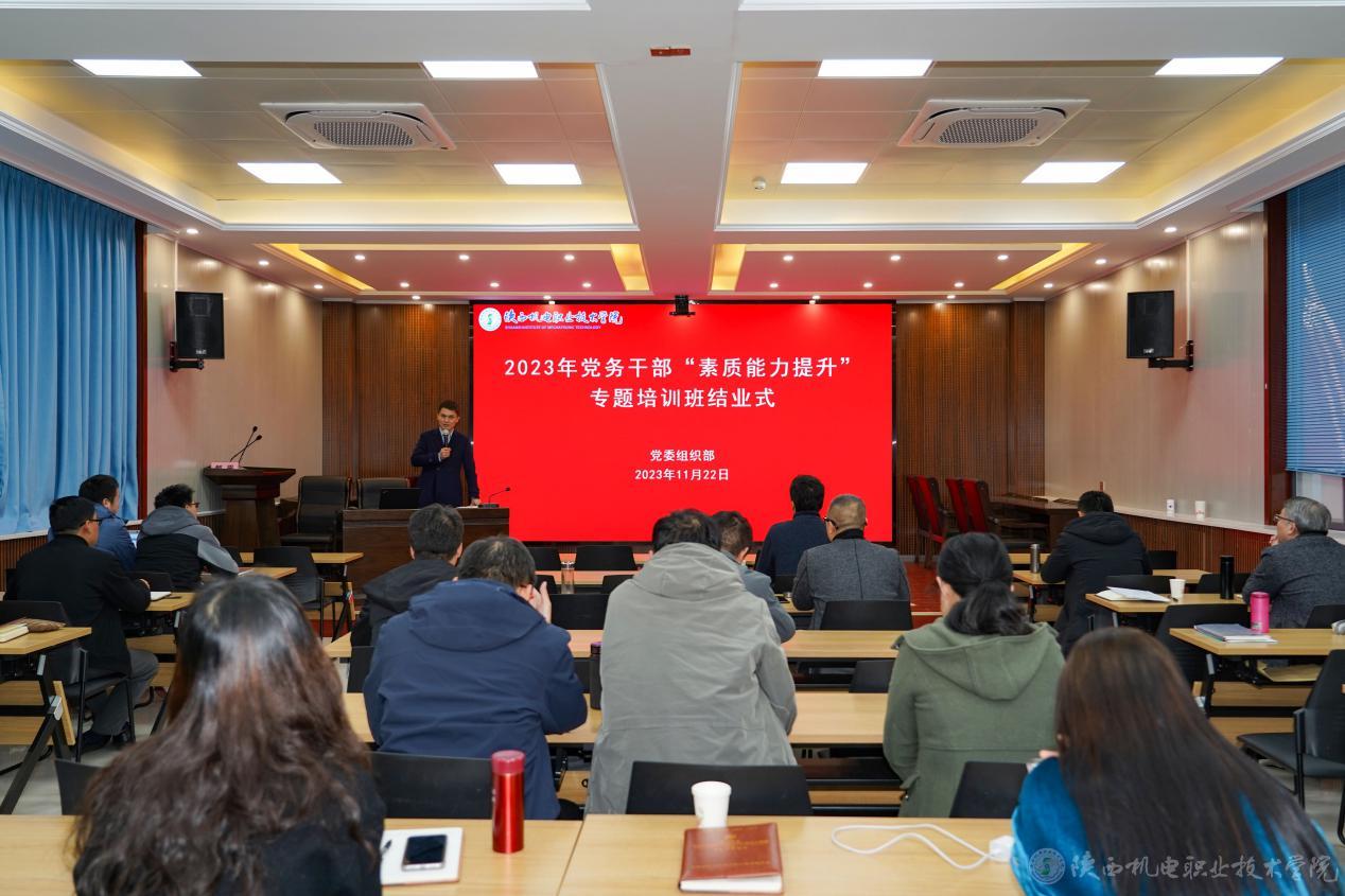 2023年11月22日,陕西机电职业技术学院2023年党务干部“素质能力提升”专题培训班在蟠龙校区博学楼111室继续举行。全校各党支部书记、支部委员、党委组织部工作人员参加,党委委员、院长助理、党委组织部部长赵争东主持并作总结讲话。