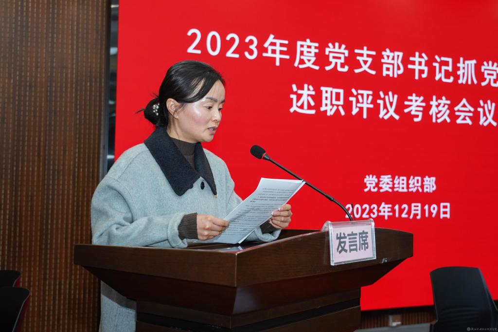 2023年12月19日下午,学校2023年度党支部书记抓基层党建述职评议考核工作会议在蟠龙校区博学楼111室召开,党委委员、校领导,各党支部书记、各二级学院院长、各部门负责人,支部党员代表参加,会议由党委副书记张琴主持。