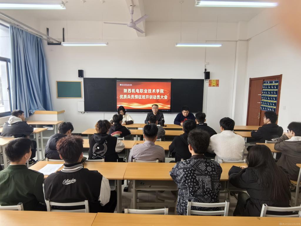 人武部干事安童老师宣读了《陕西机电职业技术学院优质兵员储备基地预征班2024年度训练计划》,明确了训练要求。预征班学员代表电子信息学院22现代信班屈杨帆、承训退役士兵代表智能制造学院23机电技术1班李阳分别作了表态发言。