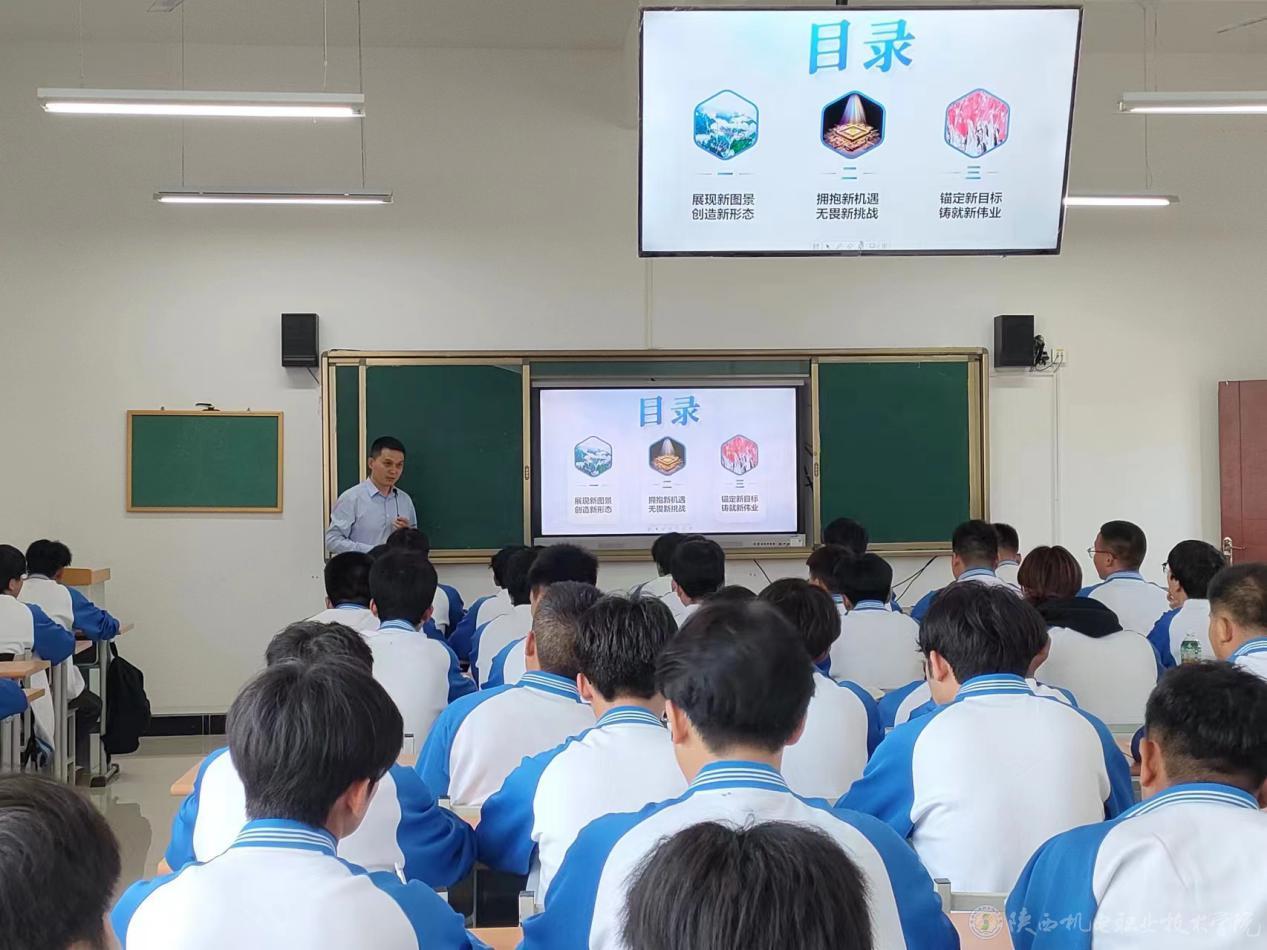 5月9日下午,陕西机电职业技术学院党委委员、院长助理赵争东在博学楼502教室为23铁道工程3、23铁道工程4合班学生上形势与政策课,讲授《读懂中国式现代化》专题内容。