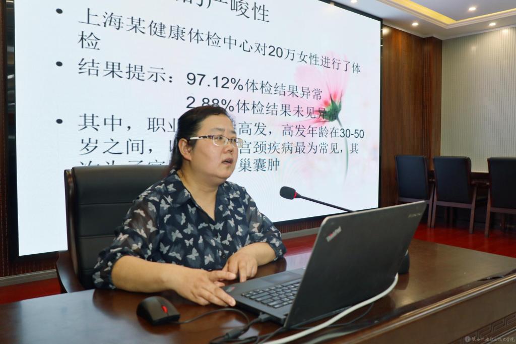 6月19日下午,校工会邀请金台区妇幼保健计划生育服务中心副主任医师杨晓婷,在蟠龙校区博学楼111会议室作女性健康管理专题讲座。工会女职工委员会主任满春艳、女教工、女学生代表到场聆听。讲座由工会副主席康健主持。