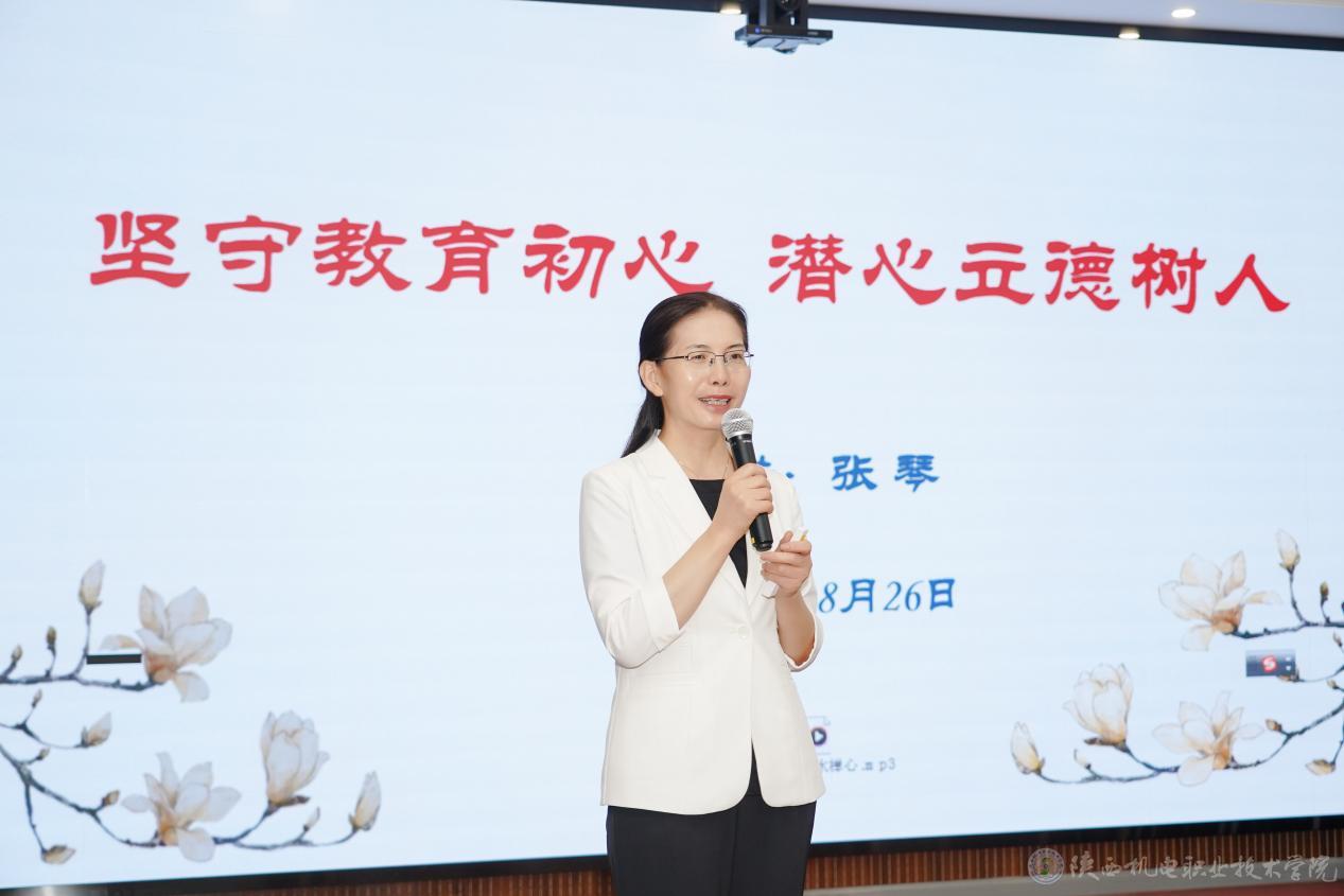 开班仪式上,党委副书记张琴发表讲话,首先对新进教师加入陕西机电职业技术学院大家庭表示热烈欢迎,同时介绍了学校的基本情况、办学特色、优势及不足,对大家提出了持之以恒抓学习、立德树人爱学生、立足岗位作贡献、正己修身扬正气、建言献策促发展五点殷切希望。