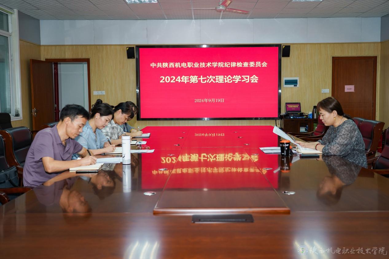 9月19日上午,陕西机电职业技术学院纪委在蟠龙校区图书楼二楼会议室召开2024年度第七次理论学习会。纪委委员、纪律检查室工作人员参加,党委副书记、纪委书记陈红梅主持会议。