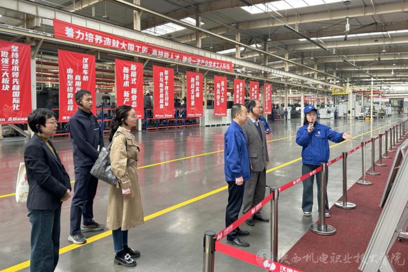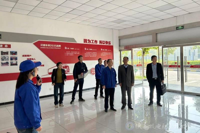 陕西机电职业技术学院校党委书记伊逊智、智能制造学院院长马海彦、智能制造学院党支部书记薛媛丽等作为校方代表,汉德车桥副总经理张文强、工会副主席赵晓辉、桥六厂厂长安军保等作为公司代表,共同参加本次活动。一行人员参观了生产车间,了解企业发展、岗位设置、生产实际等。
