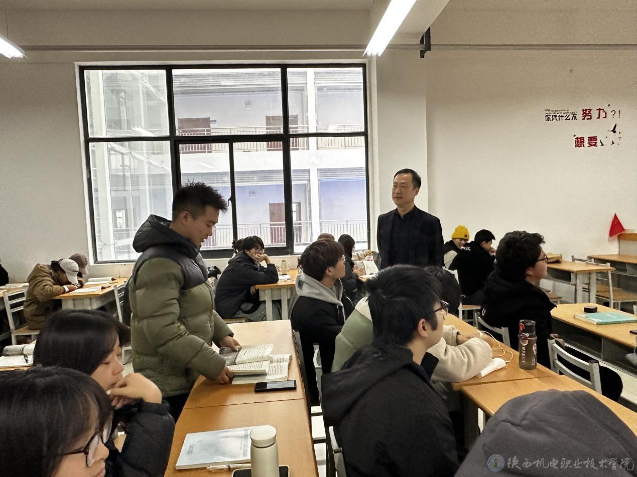 11月22日上午,陕西机电职业技术学院党委委员、副院长张克在博学楼316教室为23机电技术1、2合班学生上形势与政策课,讲授《改革的实践续篇 现代化的时代新篇》专题内容。