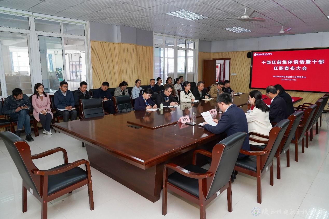 3月25日上午,学校党委在蟠龙校区图书馆二楼会议室召开新任职干部任前集体谈话暨干部任职宣布大会。党委副书记张琴,党委副书记、纪委书记陈红梅,党委委员、院长助理、组织部部长赵争东出席会议。党委书记伊逊智出席会议并讲话,会议由张琴同志主持。