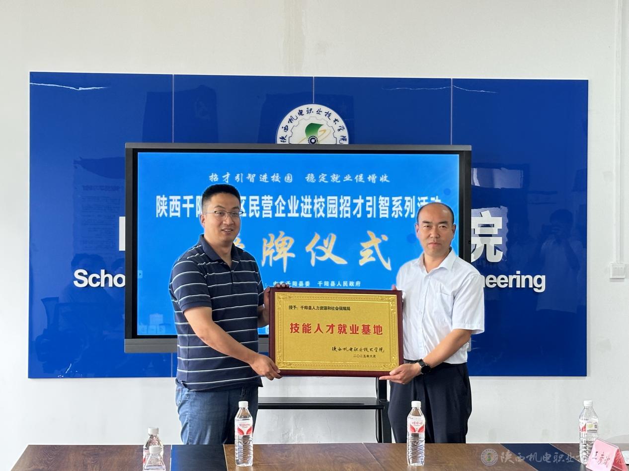 随后,党委副书记张琴代表学校与千阳县政府领导及陕西森宝蜂业有限公司等企业代表进行深入交谈,并达成合作意向。双方相互授予“千阳技工”技能人才培养基地与技能人才就业基地合作牌。