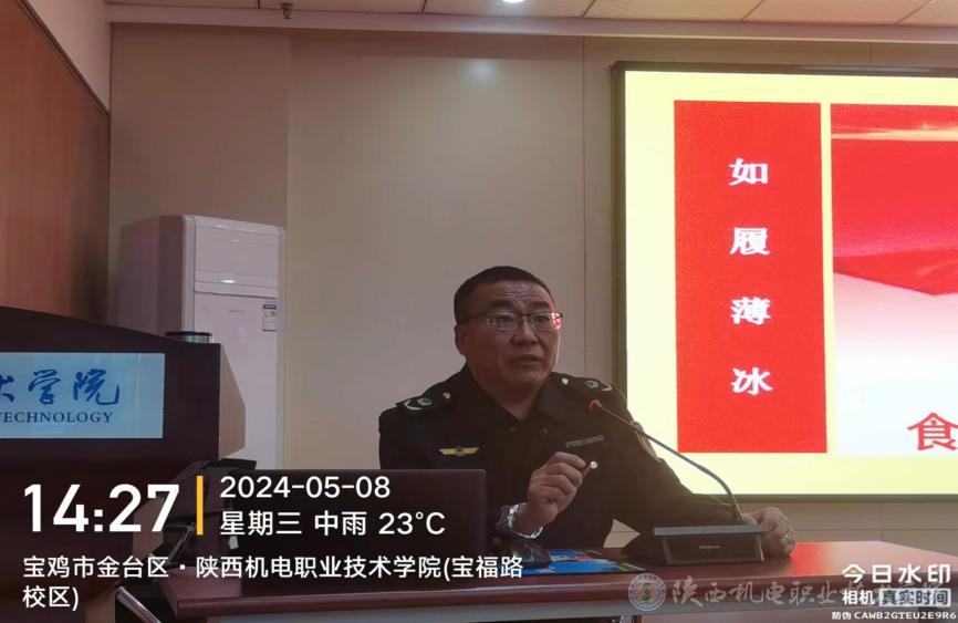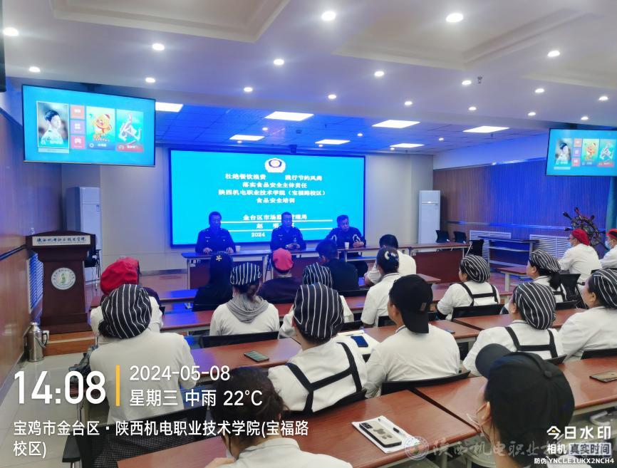2024年5月8日下午,后勤保障处邀请宝鸡市金台区市场监督管理局赵科长、西关市场监督所朱所长在宝福路校区汽电大楼四楼视频会议室对我校宝福路校区2家餐饮公司约60余人进行食品安全知识专项培训,培训会由后勤保障处膳食室主任王文忠主持。