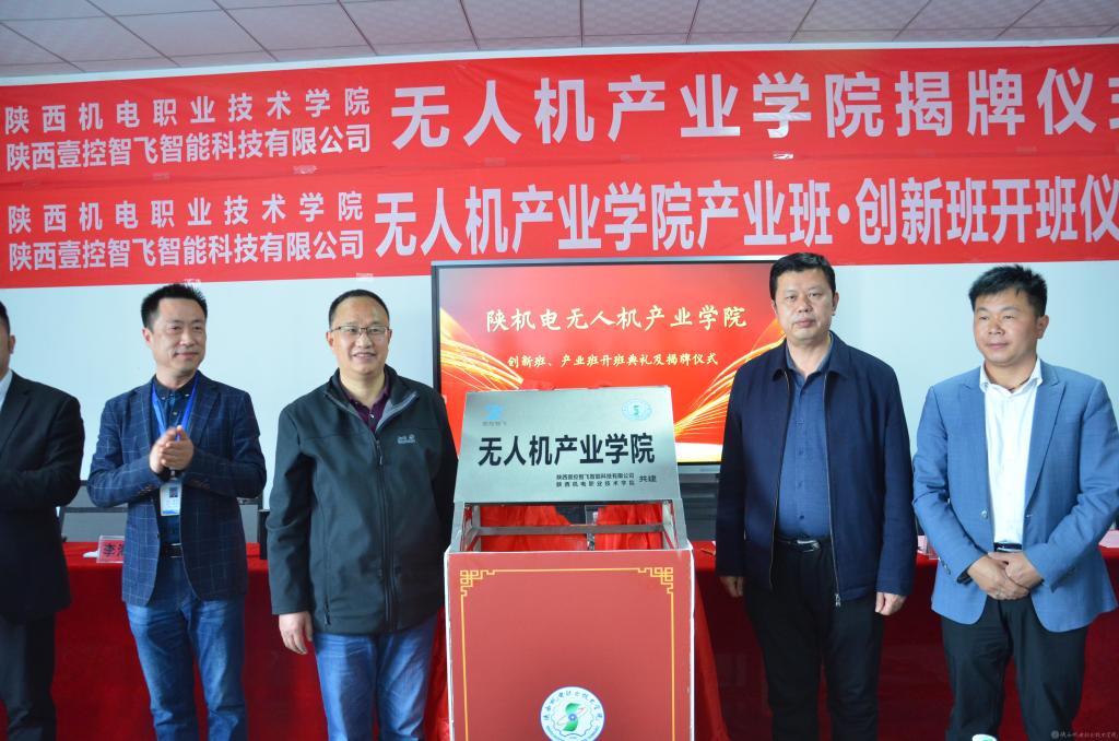 2022年4月21日,我校在蟠龙校区举行陕机电职院-陕西壹控智飞产业学院揭牌及开班典礼。宝鸡市蟠龙新区管委会主任唐军科、副主任任海龙、招商局副局长李俊,陕西壹控智飞智能科技有限公司董事长刘罡、总经理李海涛、行政总监马琳、教学主管李超康出席会议。陕西机电职业技术学院党委副书记、校长向纪明,党委委员、副校长张克以及党委宣传部、招就处、校企合作处、汽车工程学院、智能制造学院等部门负责人、专业教师代表和学生代表,宝鸡电视台、宝鸡广播电台、宝鸡日报、宝鸡新闻网等媒体列席此次会议,会议由汽车工程学院院长李靖主持。
