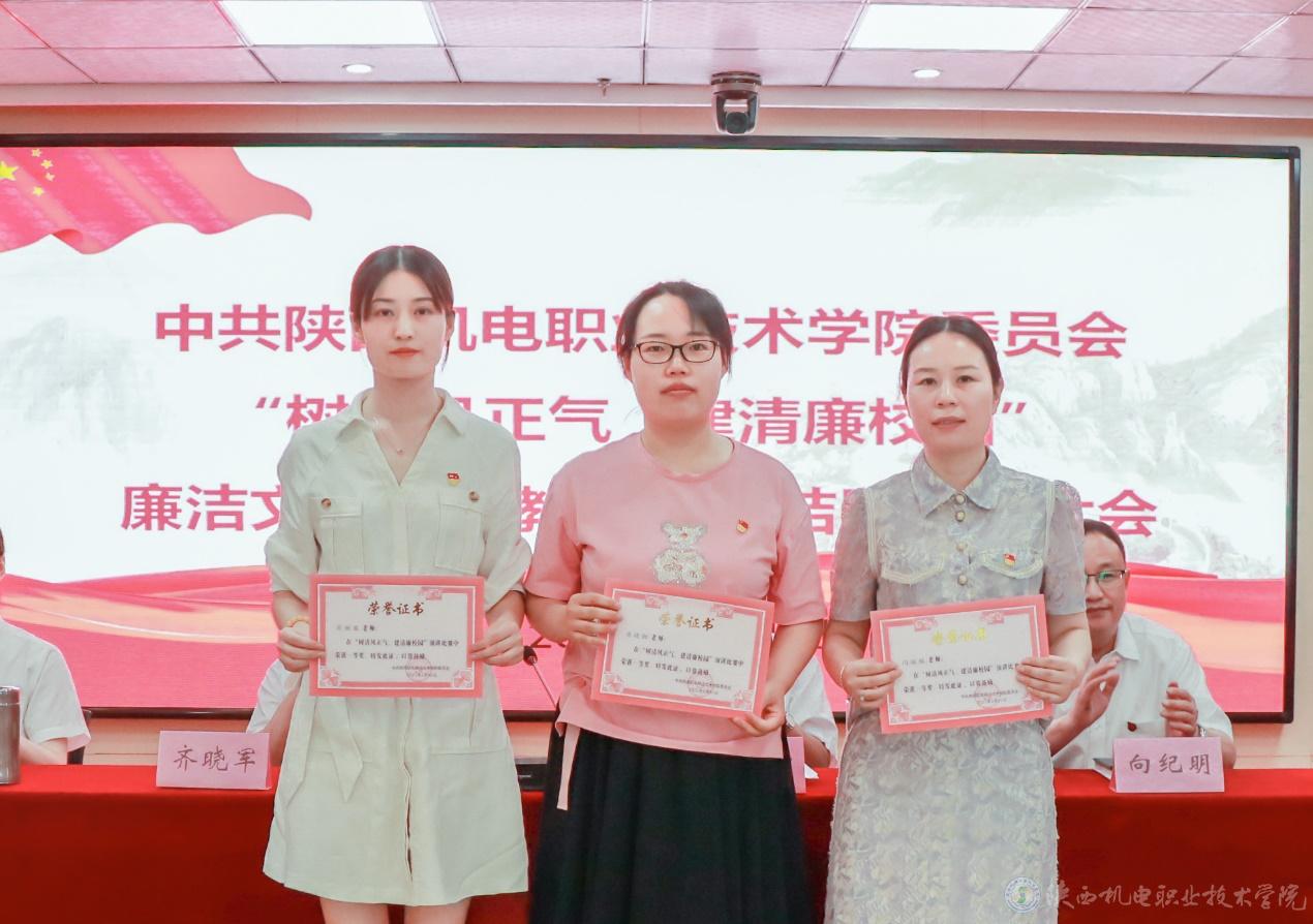 会议还对廉洁文化宣传教育月活动“优秀组织奖”、“树清风正气、建清廉校园”主题演讲比赛获奖个人进行了表彰。
