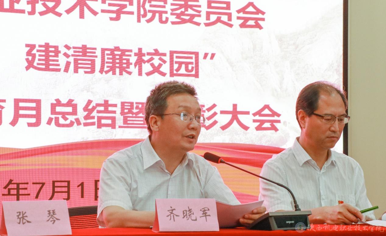 7月1日下午,学校召开廉洁文化宣传教育月活动总结暨表彰大会。会议由副院长张琴主持,学校班子成员、全体党员及受表彰人员参加了会议。