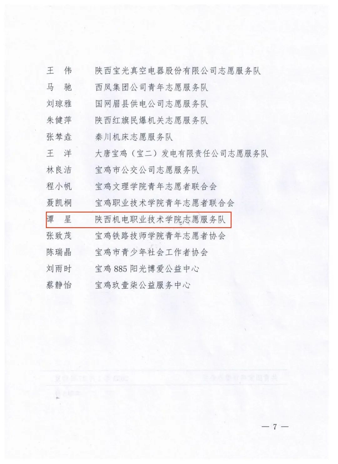 喜报 |陕西机电职业技术学院志愿服务工作获得宝鸡市市级表彰