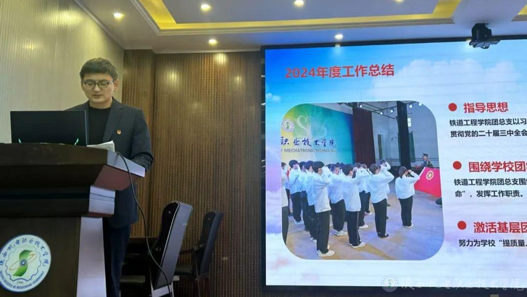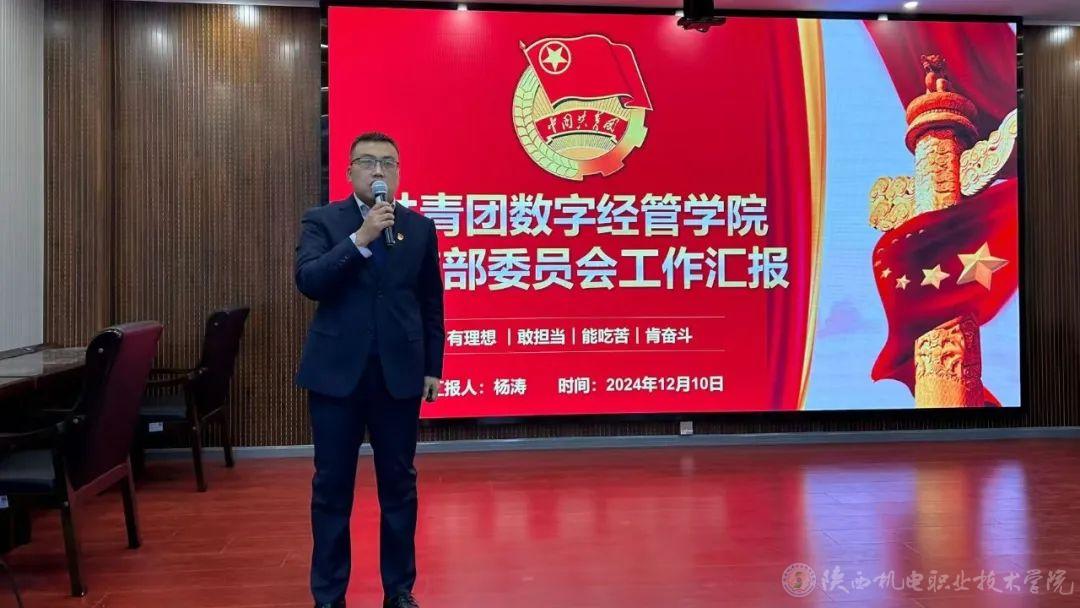 12月10日上午,陕西机电职业技术学院在蟠龙校区博学楼111会议室隆重召开了2024年度二级学院共青团工作述职评议考核大会。学校党委委员、党委宣传部部长李明,党委学工部部长、学生处处长王建斌,各二级学院党支部书记、学生管理副院长以及校团委书记王枢出席会议,各二级学院团总支负责人、校团委、学生会成员以及学生代表齐聚一堂,共同参与此次评议活动。大会由团委副书记董妍主持。
